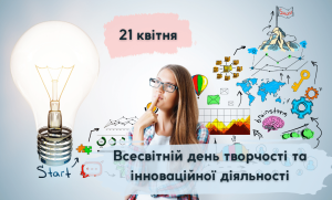 21 квітня світ відзначає Всесвітній день творчості та інноваційної діяльності (WorldCreativity and Innovation Day). Святкування цього дня було започатковано в більш ніж 50 країнах світу 21 квітня 2002 року. У 2017 році за підтримки Генеральної асамблеї ООН